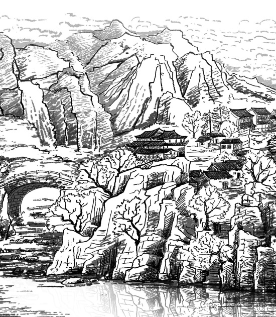 Село Фужунчжэнь – Лотосы – раскинулось в небольшой, но известной долине, где сходятся границы сразу трех провинций: Хунань, Гуандун и Гуйчжоу. Здесь, среди гор Улиншань – Пяти кряжей, издревле останавливались торговые люди, собирались герои и разбойники, происходили ожесточенные сражения. По одну сторону от села течет река, по другую – горный ручей, чуть ниже впадающий в эту реку, так что село с трех сторон окружено водой и стоит будто на длинном полуострове. На юг через реку пролегает путь в Гуандун; на запад, через каменный мост над ручьем, тянется дорога в провинцию Гуанси.