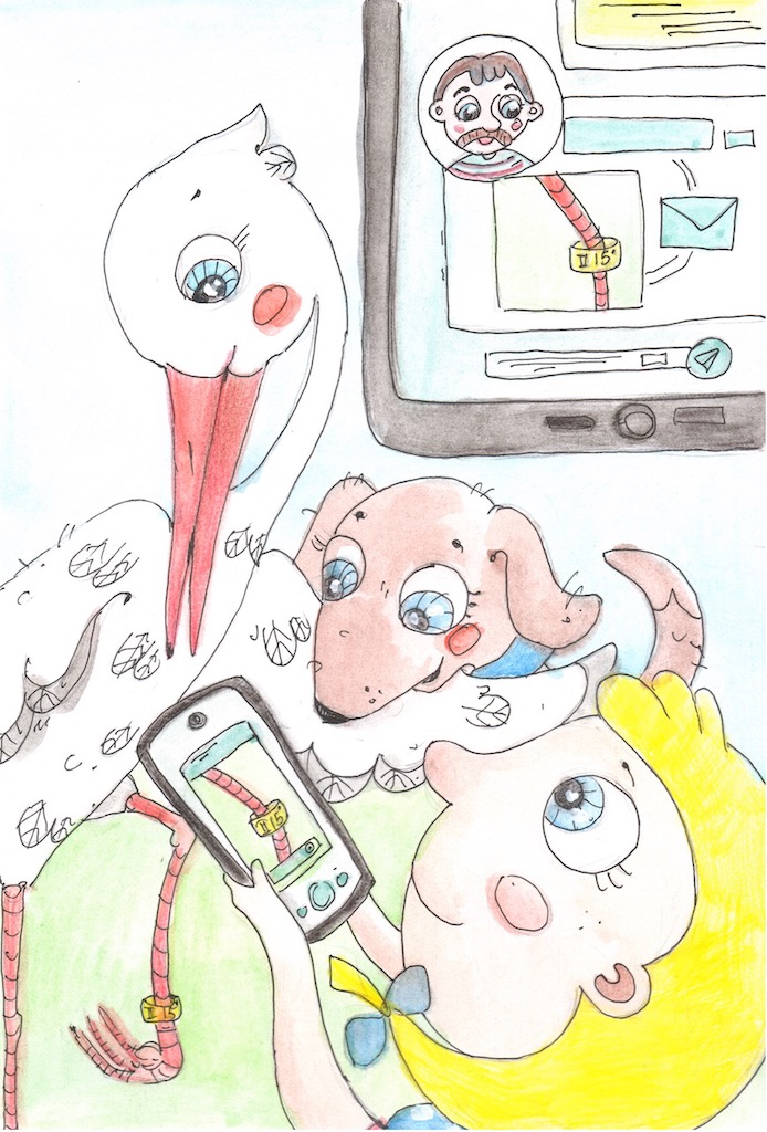 – Конечно, – согласился аист Валентин, – секретов нет. Но есть волнение и переживание за моих дочек Анютку и Дашеньку. Как вы знаете, в прошлом году в нашей семье из яиц вылупились два птенца. За лето они окрепли. Встали на крыло. И в самом конце августа мы улетели зимовать в Африку. Путь был очень дальний. Долгий. Сложный. Полный опасностей. Время от времени мы останавливались, чтобы подкрепиться. Чтобы были силы лететь дальше. И вот на самой границе нашей страны мы встретились с очень добрыми людьми. Учёными. К сожалению, я не запомнил, как называется наука, которой они занимаются.