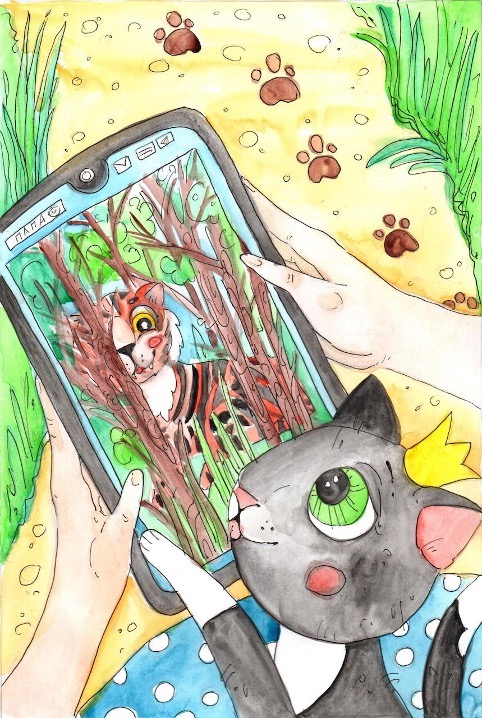 С экрана смартфона строго смотрел большой зверь. Но всё же в нём угадывались знакомые, дорогие черты любимой кошки Мурки.