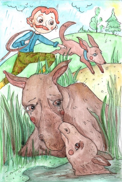 Лесник дядя Коля выбрался из болотца. Сел за руль вездехода и завёл мотор. Медленно – медленно большая машина начала отъезжать от опасного места. Светланкин папа остался рядом с лосёнком Апрелькой. Он поддерживал малышку. Следил, чтобы не соскользнули верёвки.