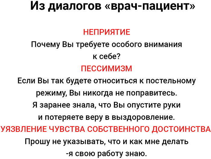 И в целом в поликлиниках и стационарах преобладает авторитарный тон, непререкаемое слово медперсонала.