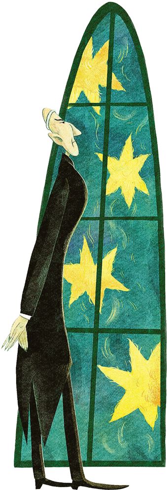 Он был высокий и синеватый, как губы после долгого купания в реке. Игнат был одет в чёрный фрак с длиннющими фалдами[1], чуть ли не до земли. Глаза голубые, с ледяным блеском, а улыбка широкая, с такой можно зубную пасту рекламировать. На лысой голове – плотный серебряный обруч.