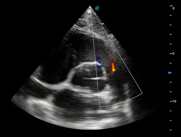 В этой позиции можно оценить, нет ли регургитации на пульмональном клапане, для этого нужно включить допплер и оценить изображение. Учитывайте, что незначительная регургитация на пульмональном клапане допустима, на рис. 8 представлен как раз такой случай.