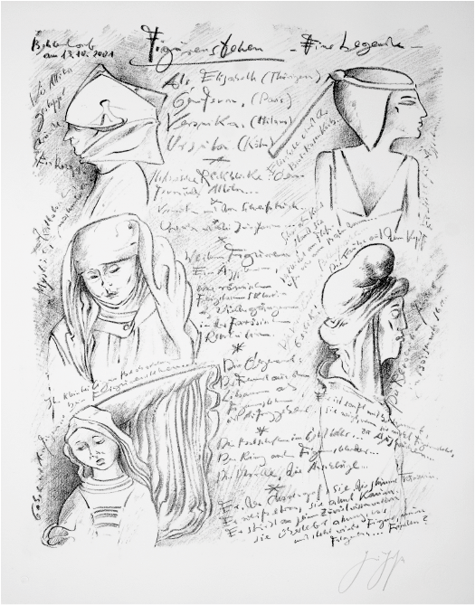 «Я приглашу их всех», – сказал я себе так решительно, словно давал клятву. Напишу пригласительные: «По случаю годовщины моего посещения Наумбургского собора, когда Берлинская стена ещё…» Но по какому адресу? И кого я, собственно, собираюсь пригласить? Исторических личностей, о которых почти ничего не известно? Этого Эккехарда «под номером два», который, будучи маркграфом, рубился в XI веке с лужицкими и польскими дружинами или с какими-то потомками Асканиев? Или мне следует пригласить на бумаге натурщиков, что позировали Мастеру из Наумбурга? Ведь он определённо лепил в своей мастерской тех живчиков или угрюмых меланхоликов, взяв их для образца откуда-то по соседству. Основатели – донаторы собора, кем бы они ни были, – дали только свои имена. А такую озорную резвушку, как эта Реглинда, или нытика Тимо, которых он изваял в камне, точно можно было встретить в переулках и на постоялых дворах Наумбурга. Когда именно? Около середины XIII века, за два-три года до даты создания – до 1250 года, когда империя Гогенштауфенов начала рушиться, собственно, незадолго перед тем, как Фридрих II отчалил в мир иной из-за апулийской болотной лихорадки или от папского яда[12]
