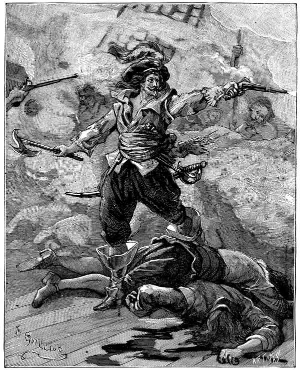 Семь или восемь человек находились в комнате, куда вошли англичане. Это были самые знаменитые предводители флибустьеров. Здесь находились Красивая Голова – свирепый дьеппец, погубивший более трехсот своих обязанных работников и уверявший всех, что они умерли от лености; Пьер Высокий – бретонец, который шел на абордаж, не иначе как переодевшись женщиной; Александр Железная Рука – молодой человек, слабый и изнеженный с виду, с женственными чертами лица, но одаренный поистине геркулесовой силой, ставший впоследствии одним из героев флибустьерства; Рок, прозванный Бразильцем, хотя родился он в Гронингене, городе в Восточной Фрисландии; затем – двое наших знакомцев, Дрейф и Мигель Баск, они прибыли на остров Сент-Кристофер в одно время с Монбаром и пользовались у флибустьеров исключительным уважением.