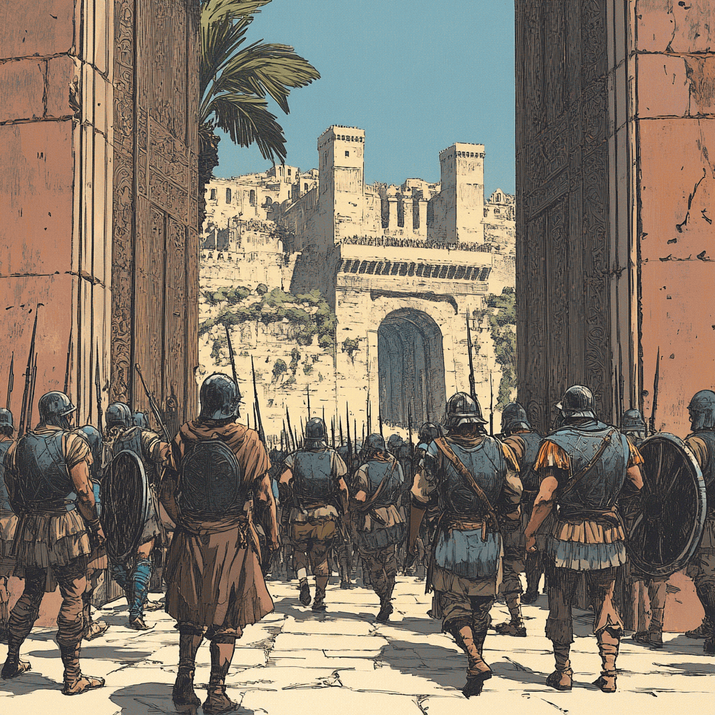 Когда они прошли, за ними заперли ворота, но народ не спускался со стен. Вскоре войско рассеялось по всему перешейку.