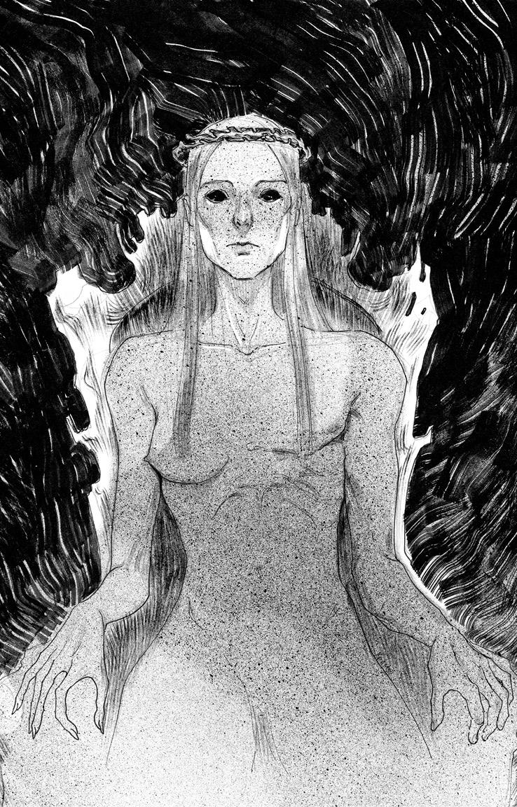 Но пара обернулась единой фигурой – не мужчиной и не женщиной, а первородным Андрогином, восседавшим на перламутровом троне. Корону Андрогина опоясывал обруч из красного дерева; будто жук-древоточец выгрыз в нем таинственные руны.