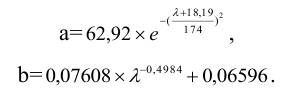При аппроксимации коэффициентов а и b получаем формулы для их вычисления в зависимости от λ: