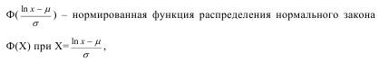 При логарифмически нормальном законе нормальному распределению подчиняется не сама случайная величина, а ее логарифм. При логнормальном распределении плотность распределения вероятности записывается формулой [8]: