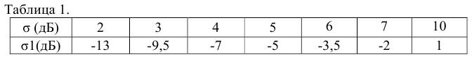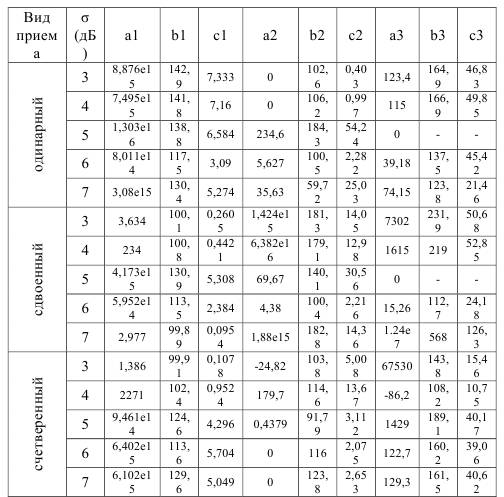 Коэффициенты аппроксимации a, b, c для целых значений σ, в зависимости от вида приема, приведены в таблице 2.