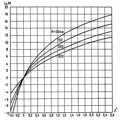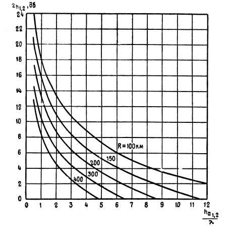 2.2.4 Потери Lh, обусловленные влиянием земной поверхности при малых величинах отношения h/λ, рекомендуется находить по графику рис. 13.