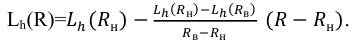 Если дальность связи совпадает с табличными значениями, то значение Lh(дБ) вычисляется непосредственно по формуле (2.34) с использованием коэффициентов из таблицы 4. Если дальность связи не совпадает с табличным значением, то для промежуточных значений необходимо вычислить табличные значения Lh(дБ) для нижнего Rн и верхнего Rв табличных значений дальности связи относительно заданной дальности связи R, и провести линейную интерполяцию полученных значений. Значение Lh(дБ) для дальности связи R будет определяться по формуле: