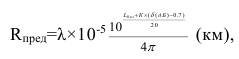 Расчет проводится методом последовательного приближения. В разработанной программе рассчитанное значение Rпред на следующем цикле автоматически вводится в программу как заданная дальность связи и расчет повторяется до тех пор пока энергетический запас трассы не будет в пределах 1< δ(дБ)<0,5. Полученное при этом условии Rпред и считается предельной дальностью связи.
