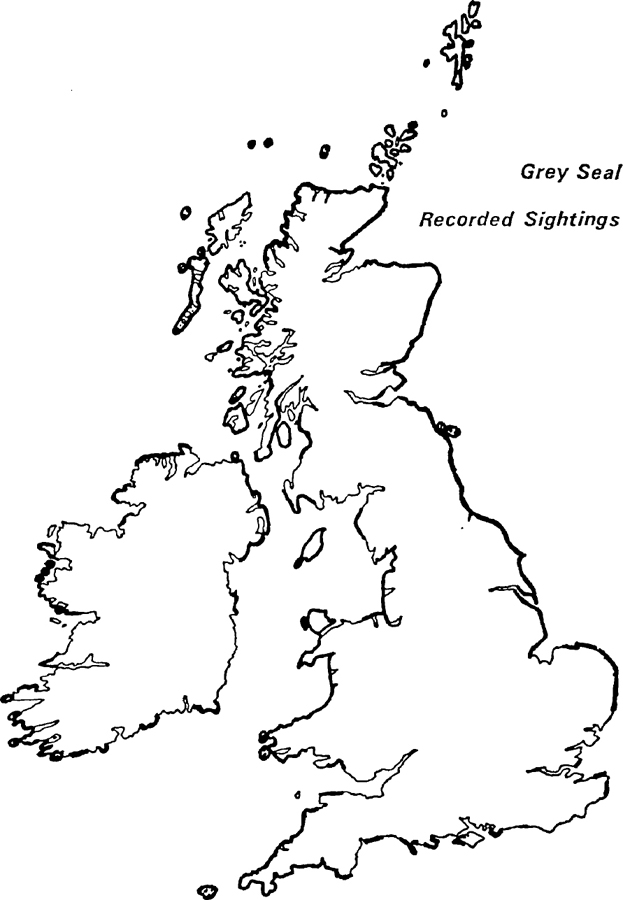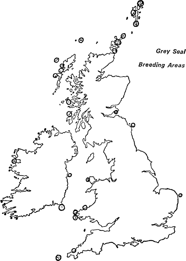 In some instances we still do not know enough to be certain whether we are dealing with one or two groups. For example, a number of grey seals breed on the north Cornish coast, there is an occasional birth on the Isle of Lundy and many more breed on the islands and coast of Pembrokeshire and Cardiganshire. Are we justified in thinking of these as a single working unit or ‘group’, or are there two? To add to the difficulty, just across the St George’s Channel, grey seals breed on the Irish islands of the Saltees and farther north on Lambay Island off Dublin. Should these be separated or included? What sort of evidence is there? We know that there are no breeding sites in the northern part of the Irish Sea but in the area of the Mersey Bight many can be seen in the non-breeding period of the year as well as on Bardsey Island off the Caernarvonshire coast and around Holyhead Island. Their numbers wane during the period when the Pembrokeshire seals are breeding but some, instead of going south, might well go west or south-west and breed on the Irish coast. Many a young seal in its first grey coat, only a month or so old, marked in Pembrokeshire, has turned up on the coast of Ireland even as far west as Galway Bay. Do they come back to the Welsh coast when they are mature, or do they join the Irish breeding seals? So far we have no definite answer and I prefer to think of a south-western group which would include all those I have already mentioned on the west and south coasts of Ireland, the Irish Sea, west Wales and Cornwall, the Isles of Scilly and Ushant off the Brittany coast.