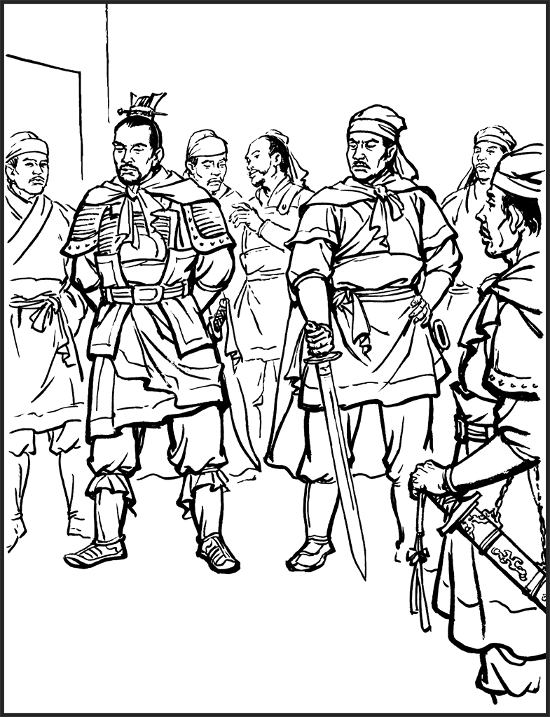 У нас мало солдат и мало еды, и мы все рассчитываем на совместные усилия. Если мы разбежимся, когда увидим врага, то все будет кончено. Великий муж, герой Хань, во что бы то ни стало, не должен отказываться от своих целей». Он объяснил всем, как выйти наружу, чтобы перевести войска, как расставить войска на позиции и как вести бой. Только тогда солдаты и офицеры успокоились и были готовы слушать его команды. В то время в городе Куньян проживало всего 8 000 или 9 000 человек, а первая группа войск Ван Сюня и Ван И насчитывала 100 000 человек. Лю Сю попросил Ван Фэна и Ван Чана не вступать в бой. Он взял Ли И и тринадцать других людей на быстрых лошадях, выскочил из южных ворот в темноте и отправил войска в Динлин и Яньчэн. Он знал, что город Куньян небольшой, стены его высоки и крепки, и Ван Сюнь и Ван И какое-то время смогут просто обороняться, не вступая в бой.
