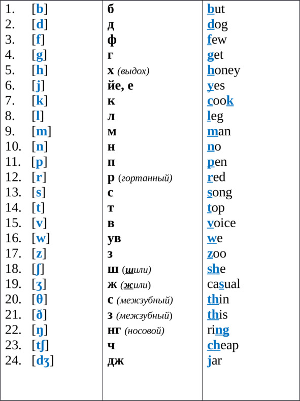 PS: В английском языке 24 согласных звука
