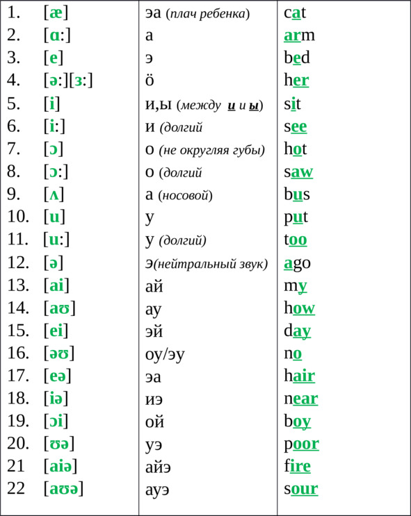 PS: В английском языке 22 гласных звука.