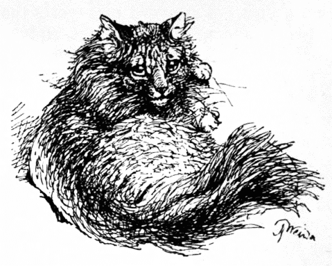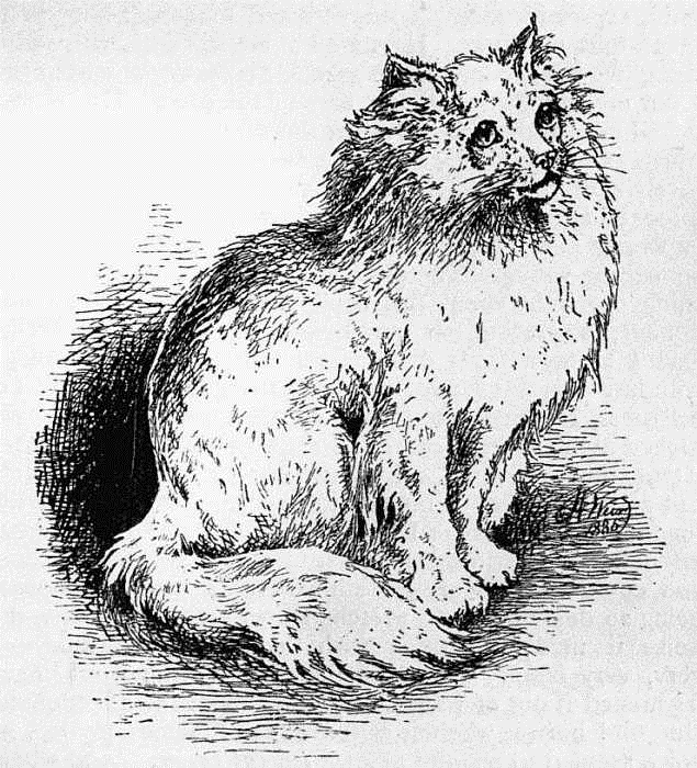 One morning a friend came—blessed be that day—and after dinner he saw "the beauty." "What a lovely cat!" said he. "Yes," said I, "he is very beautiful, quite a picture." After a while he said, looking at "Pussy" warming himself before the fire, "I think I never saw one I liked more." "Indeed," said I, "if you really think so, I will give it to you; but he has a fault—he is 'stone' deaf." "Oh, I don't mind that," said he. He took him away—miles and miles away. I was glad it was so many miles away for two reasons. One was I feared he might come back, and the other that his voice might come resounding on the still night air. But he never came back nor a sound.—A few days after he left "to better himself," a letter came saying, would I wish to have him back? They liked it very much, all but its voice. "No," I wrote, "no, you are very kind, no, thank you; give him to any one you please—do what you will with 'the beauty,' but it must not return, never." When next I saw my friend, I asked him how "the beauty" was. "You dreadful man!" said he; "why, that cat nearly drove us all mad—I never heard anything like it." "Nor I," said I, sententiously. "Well," said my friend, "'all is well that ends well;' I have given it to a very deaf old lady, and so both are happy." "Very, I trust," said I.