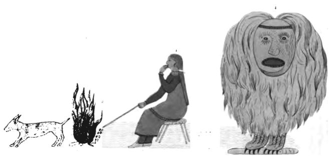 Ama Türler’in ruhları özellikle hayvanlar dünyasında önemlidir. Aynı Montagnailerden (bu açıdan inançları basmakalıptır) bahseden Le Jeune, “Onlar,” der, “her türden hayvanın bir ağabeyi olduğunu söylerler; bu ağabey tüm bireylerin kökenidir ve harikulade bir şekilde büyük ve güçlüdür. Kunduzun büyüğünün, belki de bizim kulübemiz kadar büyük olduğunu söylüyorlar, oysa küçüğü (sıradan kunduz demek istiyorum) bizim koyunlarımız kadar bile büyük değildir. Bir kimse, rüyasında bazı hayvanların eskisini veya atasını görürse şanslı bir ava sahip olacak, kunduzların büyüğünü görürse de kunduz yakalayacaktır. Geyiklerin büyüğünü görürse, rüyada gördüğü büyüklerin lütfuyla küçükleri ele geçirerek geyik yakalar. Bu büyük kardeşlerin nerede olduklarını sordum onlara. ‘Emin değiliz,’ diye cevap verdiler, ‘ama kuşların atalarının gökyüzünde olduğunu ve diğer hayvanların atalarının suda olduğunu düşünüyoruz.’” Rahip, başka bir bağlamda, bir Montagnai’den duyduğu şu hikâyeyi anlatır: “Uzun bir yolculuk yapan bir adam, sonunda kendisine yiyecek bir şeyler bahşedenin (ona tanrı demiş) kulübesine yani evine ulaşmış… Her türlü hayvan onun (tanrının) etrafını sarıyormuş, o da onlara dokunuyor, dilediği gibi davranıyor ve hayvanlar ondan kaçmıyormuş. Ama onlara zarar vermezmiş, zira yemediği için onları öldürmezmiş. Bununla birlikte bu yeni konuğa ne yemek istediğini sormuş ve konuğun bir kunduzun tadını çıkarmak istediğini öğrenince sorunsuz bir şekilde bir kunduz yakalayıp konuğuna yedirmiş; sonra ona ne zaman gitmeyi düşündüğünü sormuş. Konuk ‘İki gece sonra,’ diye cevap vermiş. ‘İyi,’ demiş adam, ‘iki gece benimle kalırsın.’ Bu iki gece olmuş iki yıl. Zira yıl dediğimiz şey, bize rızık verenin gözünde ancak bir gün veya bir gecedir. Ve insan, tanrıdan o kadar memnundur ki iki kış ya da iki yıl sadece iki gece gibi gelir. Adam kendi ülkesine döndüğünde yaşadığı gecikmeye çok şaşırmış.” Kulübedeki tanrı, şüphesiz Algonkinlerdeki evrenin yaratıcısı Messou’dur (Manabozho), çünkü o “tüm hayvanların ağabeyi” ve hayvan yaşamının hükümdarıdır. Benzer şekilde İrokualardaki evren yaratıcısı Iouskeha, ilkel hayvanları meydana getiren ve onlara isim verendir. Pere Brebeuf şunları ekler: “Hayvanların, dünyanın başlangıcından beri özgür olmadıklarına, Iouskeha’nın onları koruduğu büyük bir mağaraya kapatıldıklarına inanıyorlar. Belki bunda, Tanrının bütün hayvanları Âdem’e sunduğu gerçeğine dair bir ima olabilir.” İrokuaların yaratılış efsanesinin Seneca yorumunda rüzgârların mağarasından hayvanları getiren genç, aslında, onlara çeşitli adlar vererek Âdem’in görevini yerine getirir.