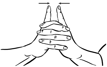 Соедините пальцы руки, а указательные вытяните и разведите в стороны, как на рисунке 1. Держите тело прямо, но расслабленно, спокойно сфокусируйте взгляд на кончиках пальцев. Сделайте попытку соединить указательные пальцы усилием вашей концентрации.