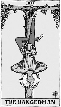 Речь идет о кризисе, запутанной ситуации – словом, о том, что лишает вас сил, о необходимости жертвы. Карта может также указывать на болезнь или депрессию.