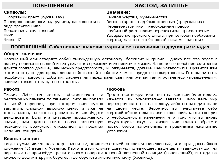 Повешенный в раскладе «Слепое пятно»ПОЗИЦИЯ 1 – Что каждый знает