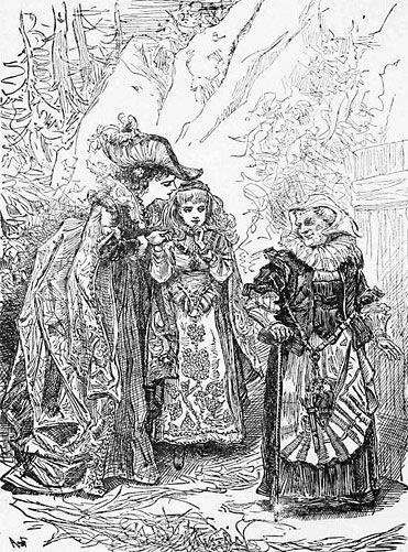 Лицо Лауры выражало тихое изумление, и, как только мать покинула ее, она бросилась на землю и горько зарыдала. Однако долго плакать ей не позволили, потому что старушка вдруг постучала тростью по скале и перед Лаурой появился чудной старый слуга. Он оказался таким же престранным, как и сама старушка. Это был гном с улыбкой на добром лице, в серой рубашке, деревянных башмаках и пурпурной шапочке с длинной кисточкой.