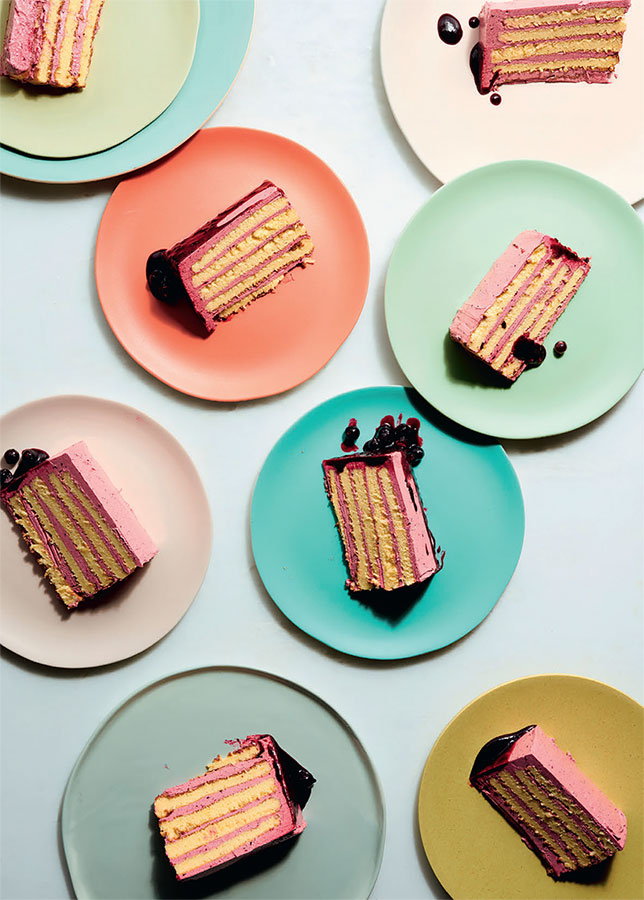 Потом Хелен открывает коробки и достает из них результат по меньшей мере трех дней усердной работы на кухне. За одну воскресную дегустацию мы могли легко перепробовать по три варианта двух тортов, над которыми она работала, каждый с каким-то небольшим изменением (скажем, в одном ваниль, в другом пандан, а в третьем – «пять специй»), печенье, которое Хелен попробовала в Америке, повторила дома и захотела переделать в стиле Ottolenghi, пару видов конфет (например, орехи в карамели и в шоколаде и итальянскую нугу) и три вида ягодных сиропов, а напоследок она могла на скорую руку испечь панкейки или вафли из принесенного с собой теста – для меню завтраков Ottolenghi Islington.