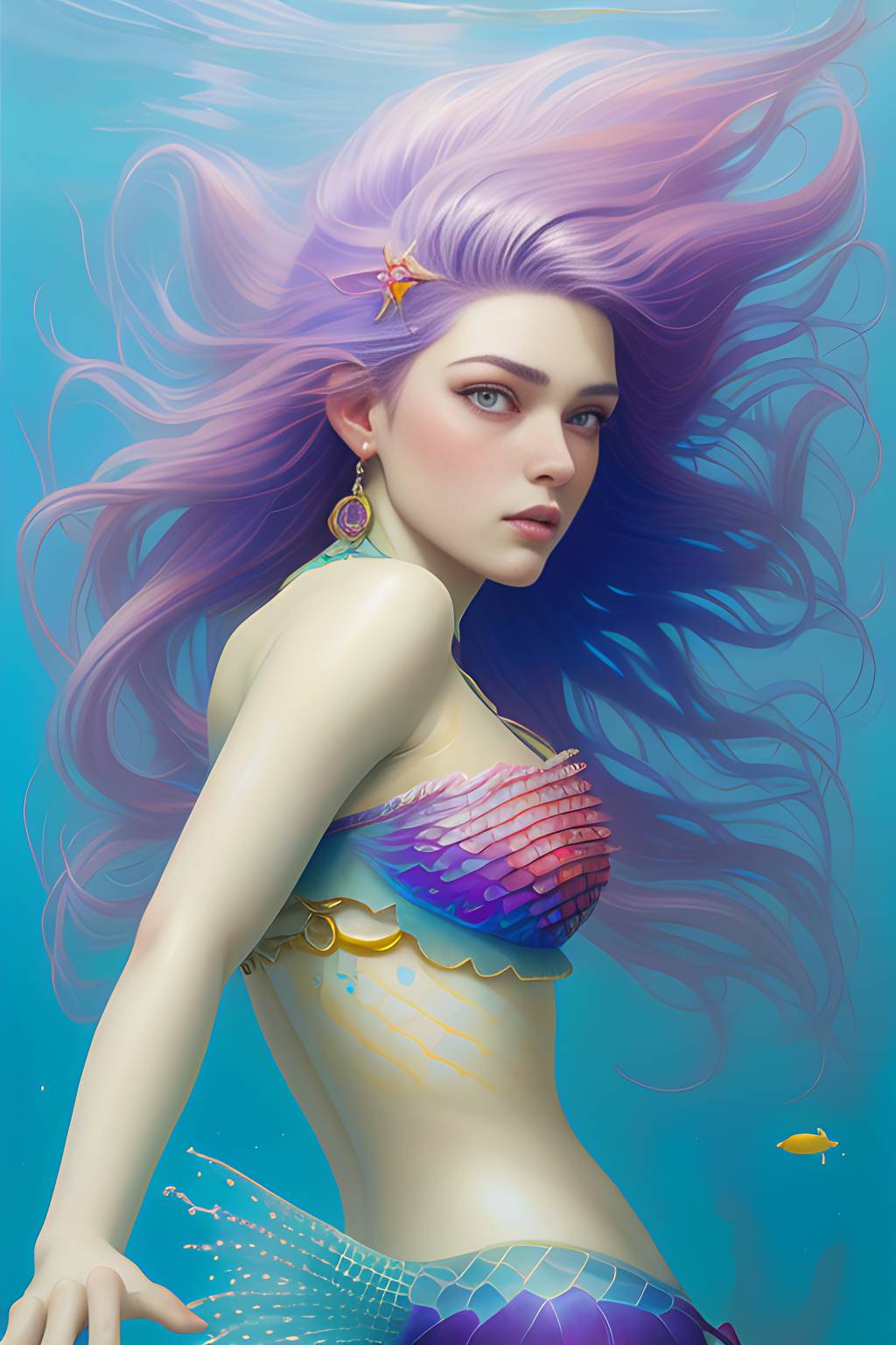 Лис краем глаза наблюдала за одной. Русалка плыла рядом в футах десяти от неё, и девушка могла изучить свою преследовательницу. Бледная кожа, зелёные глаза, высокие скулы и фиолетовые длинные волосы под стать хвосту. Она казалась чужой среди бездушных существ.