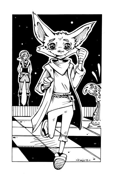 Эша взглянула на свои ладони, надела перчатки и окликнула Фрави, сидящего на верхушке каменной арки и любующегося огнями города. Лисёнок ловко спустился, используя лапы-присоски.