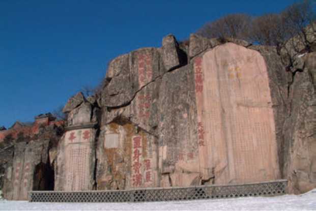 На вершине горы Дай действительно хорошо вести диалог с небом. Многие люди хотели избавиться от притяжения этой грешной земли и взмыть в небо. Они отправлялись на побережье Восточно-Китайского моря, в провинцию Шаньдун, на равнину, чтобы подняться на гору Тайшань. Широкая и ровная, она вовсе не похожа на обычные горные пики. Самая высокая точка называется Юйхуандин («Вершина нефритового императора»). В южной части Тайшань расположена обширная смотровая площадка. На юго-востоке стоит скала Жигуаньфэн («Вершина наблюдения за солнцем»), неподалеку от нее виден камень Таньхай («Ищущий [на дне] моря»). Здесь есть и терраса для задумчивых прогулок; и беседка, в которой можно насладиться полнолунием; и множество огромных каменных плит, чтобы оставить на них памятную надпись. Небо словно постелило красную дорожку к главному входу, дабы люди могли поведать о своих заветных желаниях.