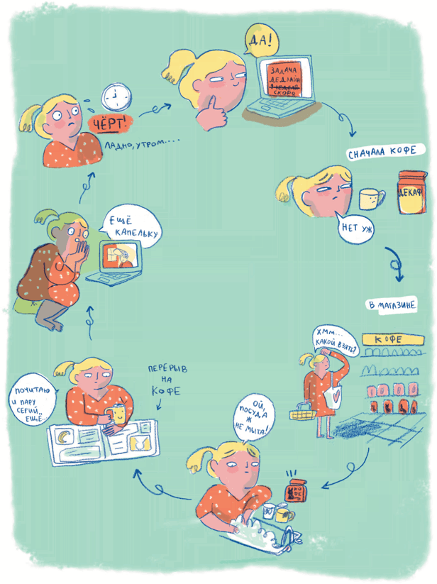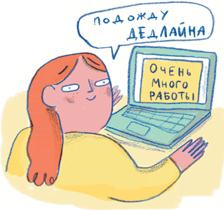 Надя работает в мэрии. Прошло несколько недель с тех пор, как она обещала написать отчет, и срок сдачи приближается. «Сначала я думала: время еще есть. Заниматься писаниной не хотелось совершенно, поэтому я переключалась на мелкие дела, которые попадались под руку. Теперь я с ума схожу от тревоги: боюсь не успеть. Самое ужасное, что со мной такое случалось и раньше, и коллеги уже открыто проявляют недовольство. Думаю, они могут отказаться со мной работать».