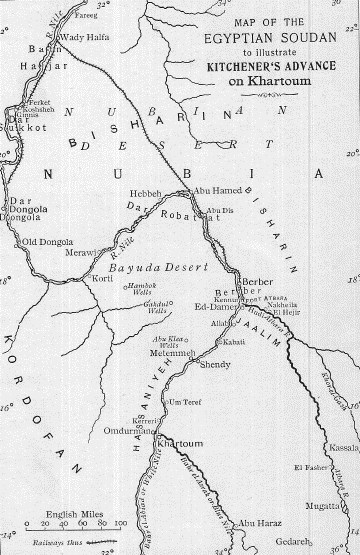 At Sarras, some thirty miles up the road, there had been a fight on the 29th of April, 1887; when the Dervish host, advancing strong in the belief that they could carry all before them down to the sea, were defeated by the Egyptian force under the Sirdar and General Chermside.