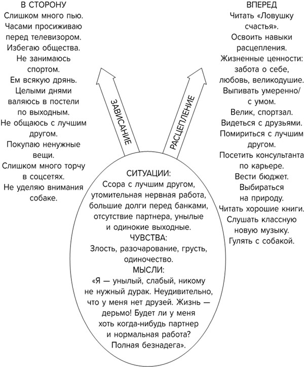 Каждый из нас в той или иной мере пользуется стратегиями борьбы, чтобы избегать нежелательных мыслей и чувств. И если это происходит в разумных пределах, проблем нет. Например, порой я съедаю шоколадку, когда нервничаю. Это обычная разновидность отвлечения – постараться уйти от неприятного чувства, переключив внимание на что-то другое. И поскольку я соблюдаю меру, это не создает для меня серьезных проблем: я не полнею и не наживаю себе диабет. Однако в возрасте двадцати с небольшим все было совершенно иначе. Тогда я был врачом-стажером, испытывал на работе невероятный стресс и, чтобы как-то справляться с ним, поедал горы печенья, пирожных и шоколада. (В особенно трудные дни я мог проглотить целых пять пачек шоколадного печенья.) В результате я сильно располнел и у меня появились проблемы с давлением. (Вряд ли я служил хорошим примером для своих пациентов!) Неумеренное использование этой стратегии борьбы привело меня к огорчительным последствиям.