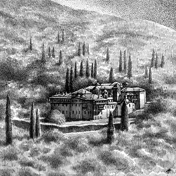 После монастыря святого Дионисия, у подножия самой высокой вершины Афона [9], показался монастырь святого Павла. С моря виднелись величественные здания, похожие на старую венецианскую крепость. В этом монастыре, как многоценное сокровище, хранятся Дары, которые волхвы преподнесли новорожденному Господу.