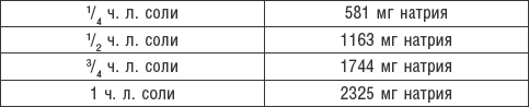 Вышеупомянутые продукты могут содержать смесь хлорида натрия и хлорида калия. Но если заявлено, что продукт «не содержит соли», значит, он произведен только с хлоридом калия и не содержит натрия. Не содержащие соли смеси приправ из растений и пряностей, такие как Mrs.Dash, также не содержат натрия. Рекомендуемая на день норма дается в миллиграммах натрия. Приводим таблицу перевода меры чайной ложки поваренной соли в миллиграммы натрия.