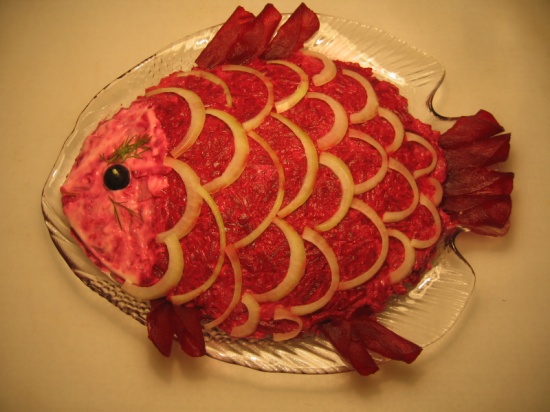 Правило игры: на столе в тарелочках рыбные блюда. Детям предлагается угадать по цвету и по вкусу название рыбы.