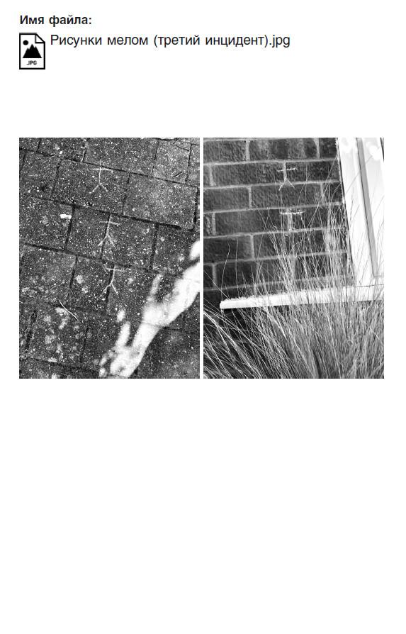 На подъездной дорожке, в куче хлебных крошек, виднелись три маленькие фигурки, нарисованные мелом.