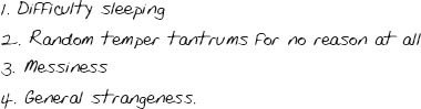 “She’s an alien unsuccessfully trying to fit in with the rest of the human race,” Dad says knowingly, dipping a bit of toast in egg yolk and then dripping it on the table. “Is there anything in your book to help us figure out what she wants with us poor earthlings before she sucks our brains out with her tentacles?”