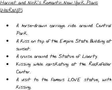Right. It’s bad enough that Toby and Nat are thrilled by my departure, but my boyfriend? He’s supposed to be making impassioned speeches on the edge of bridges about the darkness of life without me. Not throwing a mini verbal celebration and cracking out the Harriet’s Finally Leaving banners.