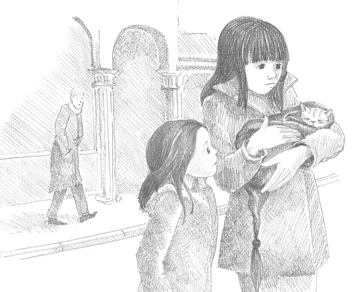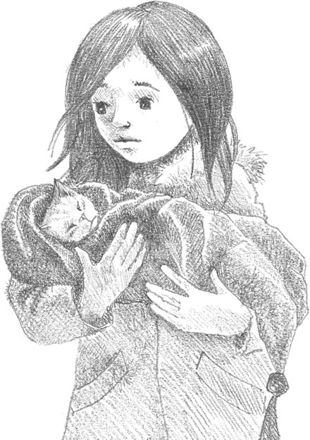 От слабости или потому, что понял, что пришла помощь, котёнок вёл себя очень тихо, не вырывался и не пищал. Хелен взяла сумку Люси и шла рядом с сестрой, то и дело поглядывая на котёнка. Головка у него свесилась, время от времени рот открывался в еле слышном, почти беззвучном «мяу».
