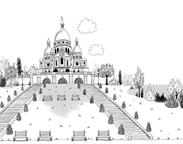 В большом городе в самом сердце Франции есть белая церковь, стоящая на холме. Из белого камня, с белыми же куполами, она похожа на свадебный торт, покрытый сахарной глазурью. Церковь очень старая и очень известная, и каждый день сотни людей приходят на неё посмотреть.