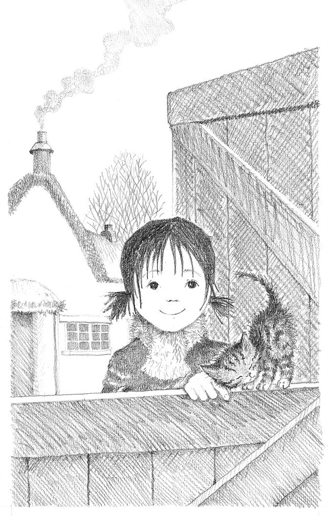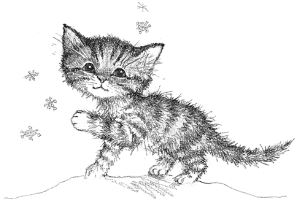 «Милый котёнок? Она имеет в виду меня?» – Пушинка так удивилась, что даже обернулась посмотреть, нет ли позади неё другого котёнка, забыв о том, что она того гляди свалится с двери. Она отчаянно мяукнула и вцепилась когтями, чтобы удержаться.