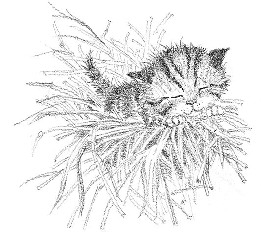 Суета так взбудоражила братьев и сестёр Пушинки, что они пытались прошмыгнуть за ворота конюшни всякий раз, как те открывались. Когда появлялся новый покупатель прекрасных рождественских венков, миссис Моффет обращала его внимание на котят, мило резвящихся на дворе. И довольно скоро двух черношёрстных сестричек Пушинки забрала леди, которая влюбилась в них, когда те тёрлись у её ног.