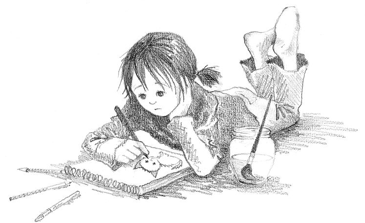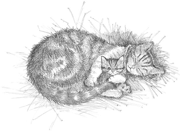 Элла взяла лучшие цветные карандаши и начала раскрашивать чудесную полосатую шерсть Пушинки, иногда проходясь влажной кисточкой, чтобы шерсть котёнка выглядела мягче и пушистее.