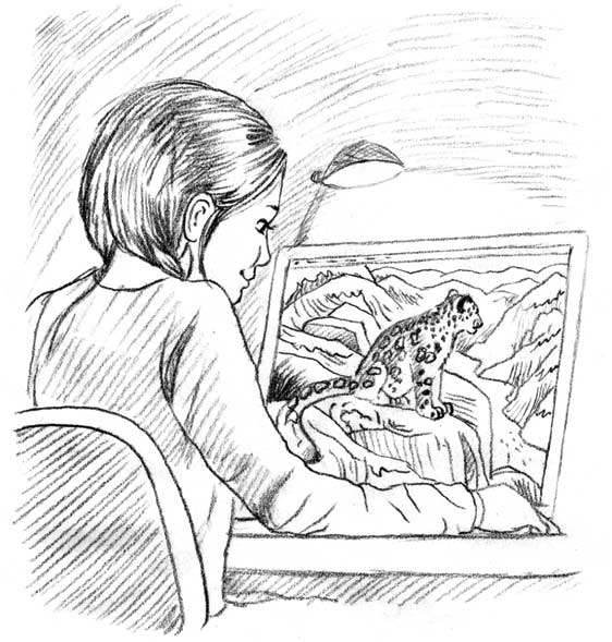 На сайте был целый раздел с фотографиями снежных барсов и их детёнышей. Котята были ещё милее, чем взрослые барсы, и были очень похожи на детёнышей обычного леопарда. Изабель не могла понять, почему. Может быть, потому, что у детёнышей обычного леопарда лапы шире, а шерсть пушистее, чем у взрослых.