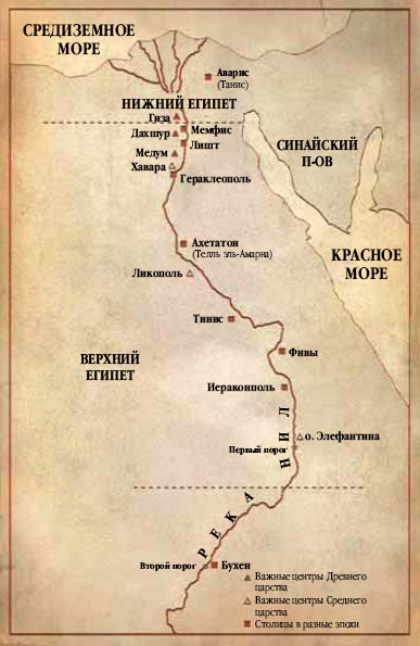 Карта Египта с основными центрами древности