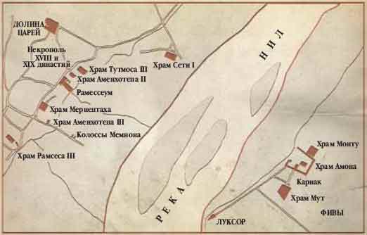 Карта древних Фив с указанием ныне существующих памятников