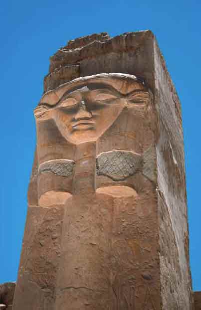 Колонна с хатхорической капителью в часовне Хатхор. XVIII династия. Храм Хатшепсут