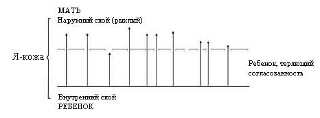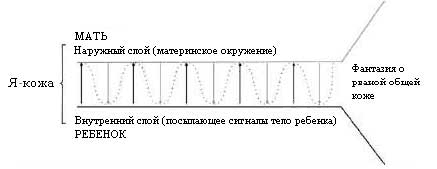 Фантазия об общей с матерью коже лежит в основе всего описанного выше процесса. Я-кожа может иметь внутренний и внешний слой. Материнская среда может быть внешним слоем, а поверхность тела ребенка может быть внутренним слоем, посылающим сигналы (рисунок 2.1).